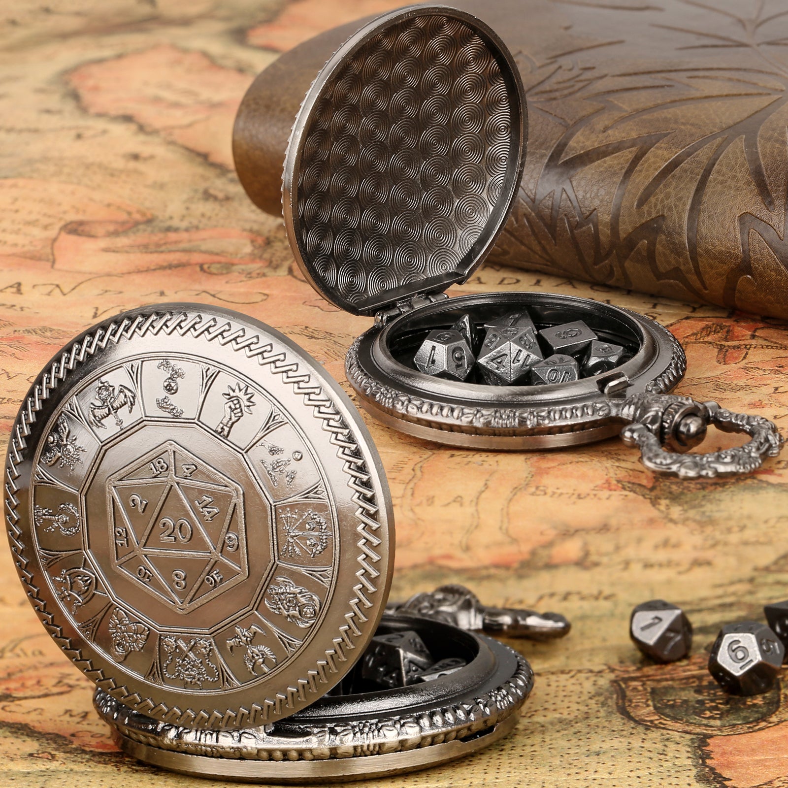 - Master of Magic: The hinged pocket watch opens to reveal a secure compartment, keeping your dice safe. With the included chain, this vault can be worn or carried as a symbol of your mastery over the magical arts.