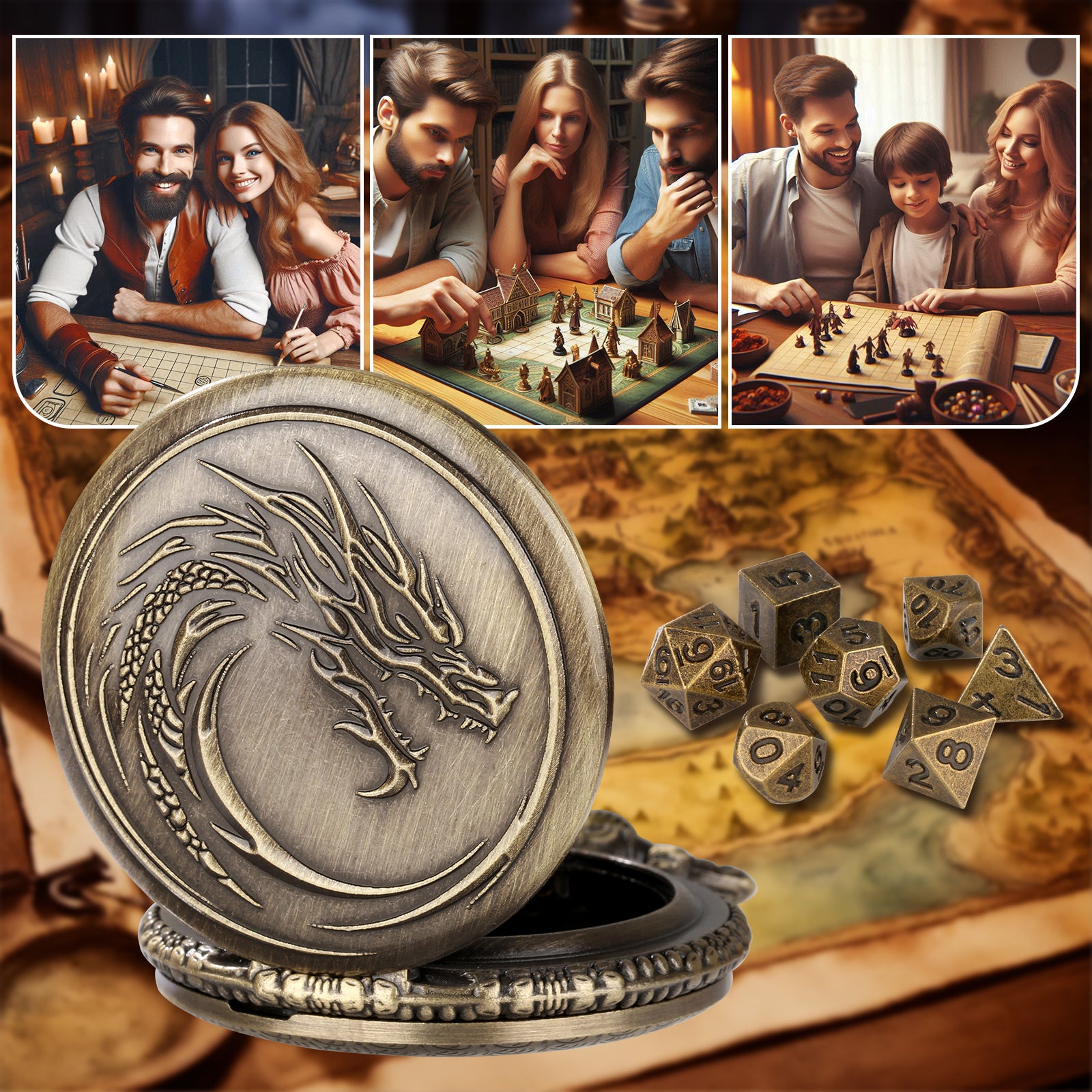 A hoard you can hold in your hand. This vintage-style hunter case features the high-relief profile of the Scale-Lord. Press the crown to reveal a secret cache containing a full set of heavy metal micro-dice